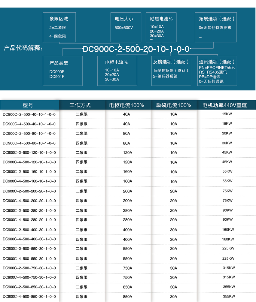 控制和通訊 DC900C調速器由一個32 位微處理器控制,提供以下先進性能: -復雜的控制算法 簡單的模擬電路無法實現 -軟件可配置的控制回路 建立在標準的軟件模塊基礎上 -串口通訊 連接其他驅動或電腦,用于更先進的系統 | 功率配置 -DC900C四象限可逆;2個全控可控硅 -DC900C兩象限非可逆;1個全控可控硅 -晶閘管控制可變磁場供電 |
